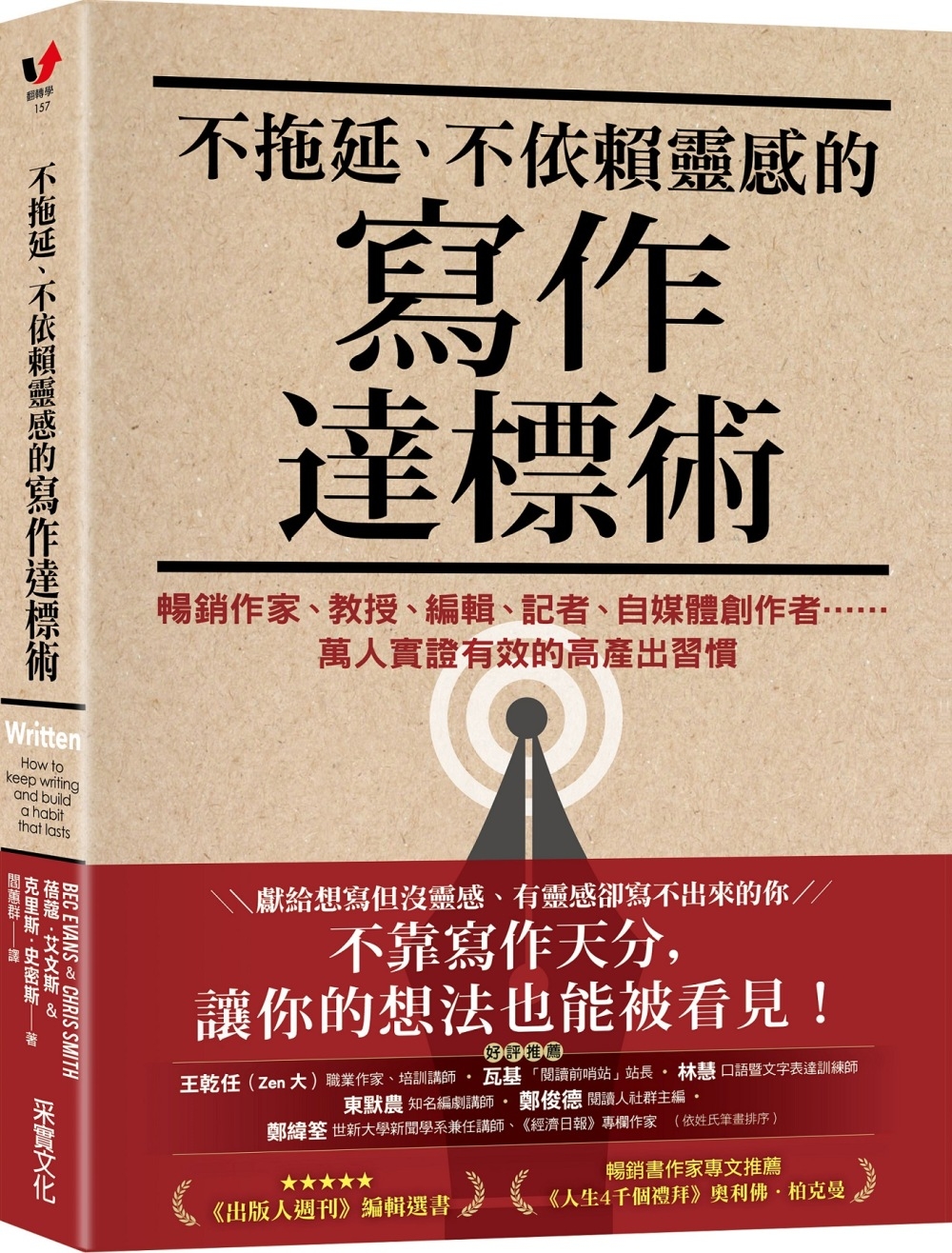 「這本書是任何努力養成寫作習慣的人(我們大多數人!)不可或缺的夥伴。有了蓓蒄和克里斯的陪伴,寫作之路將不再孤單,也更容易實現。我們將在未來數年廣泛與我們的寫作社群分享這本書。成為作家沒有神奇祕方,但這本書已經非常接近了。拿起它,開始行動─然後放下它,開始寫作。」──馬修.特里內蒂(Matthew Trinetti),倫敦作家沙龍共同創辦人