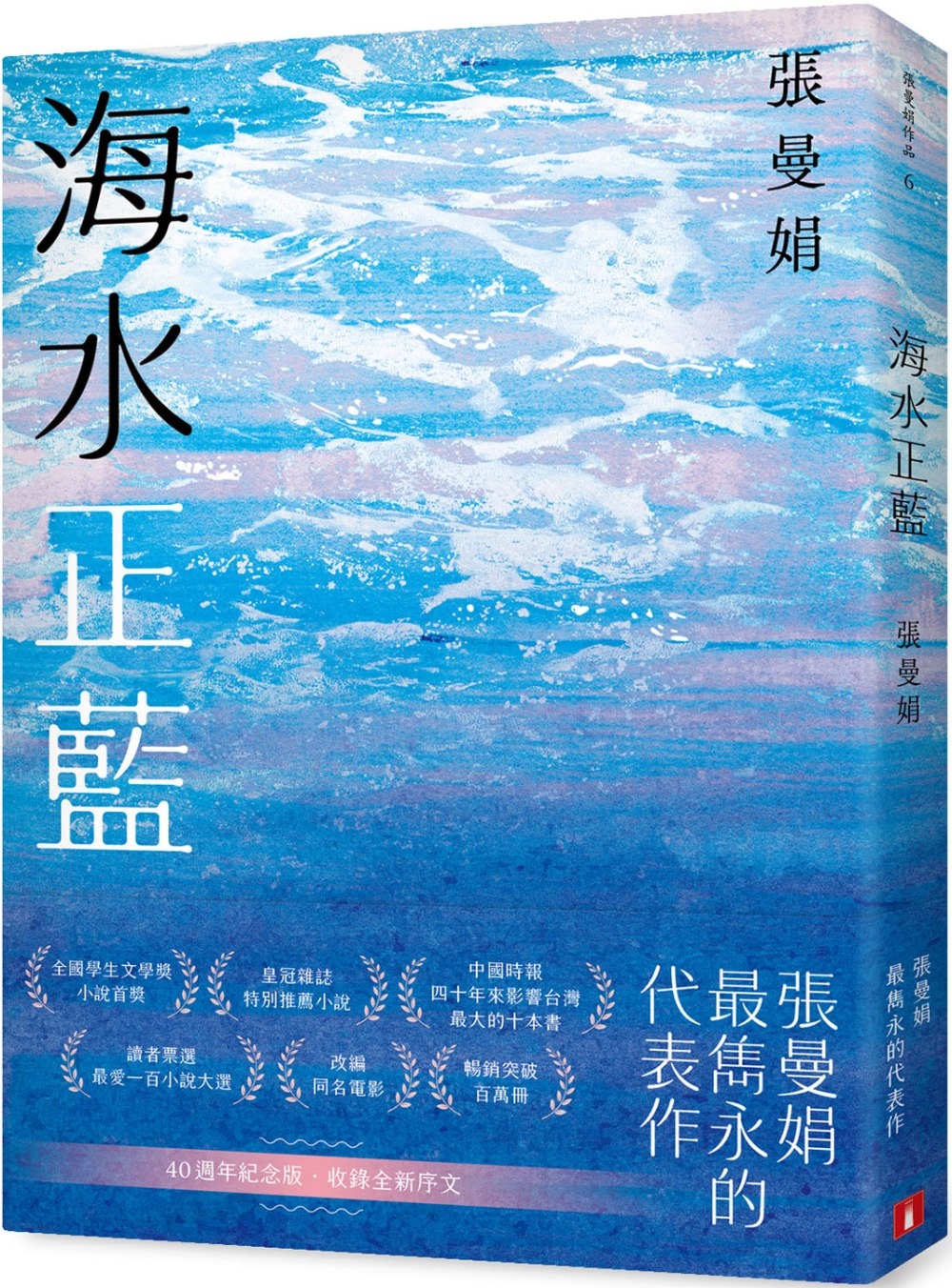我感激這樣的相遇,感激改變了我的一生的《海水正藍》。四十年並不是一眨眼,四十年發生了許多事,人生海海,我仍能聽見規律的潮聲,亙古的迴盪著。」──張曼娟