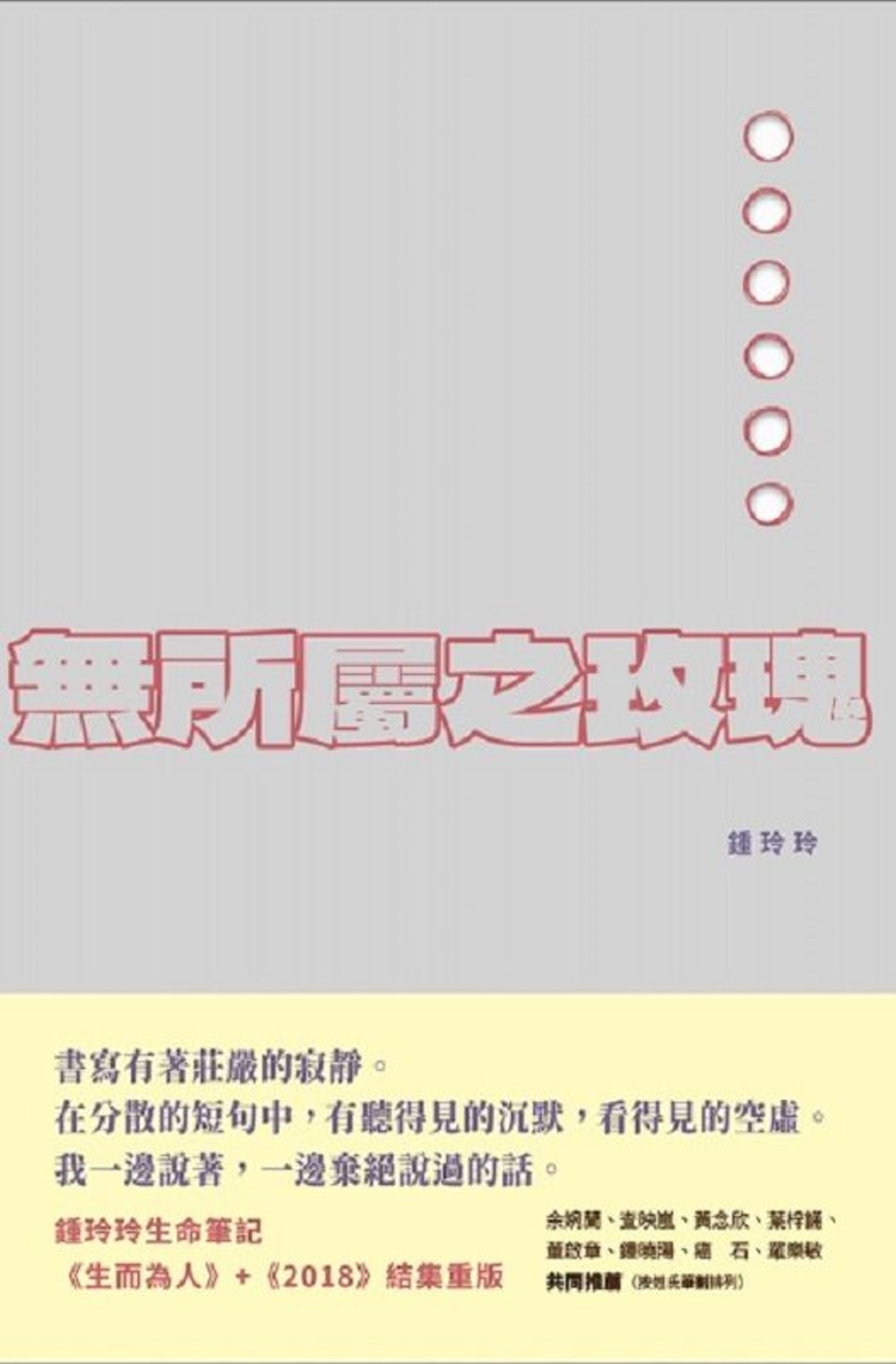 《無所屬之玫瑰》結集鍾玲玲分別於2014及2018年隨文學雜誌《字花》附送的《生而為人》及《玫瑰念珠2018》(本為沒有名字的書)。《無所屬之玫瑰》思考生命、愛、家族與命運等命題。全書分為三部份,分別是寫於2008年的〈自由的幻影〉;2014年的〈生而為人〉;及2018年的〈A君的來信〉、〈愛菲愛上帝愛到死〉、〈那深深的腥紅〉及〈無所屬無所屬之玫瑰〉。