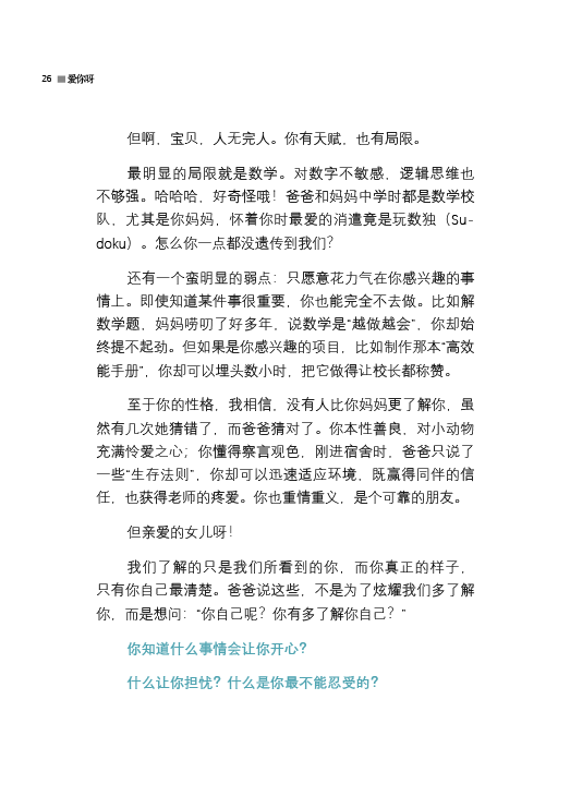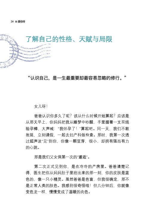 这50封信既私密又诚实,每一封都凝聚着父亲的温柔(和一点点唠叨),既写给未来的女儿,也写给曾经年少的自己。书中既有生活的细节,也有哲理的温度,其中的至理名言包括: