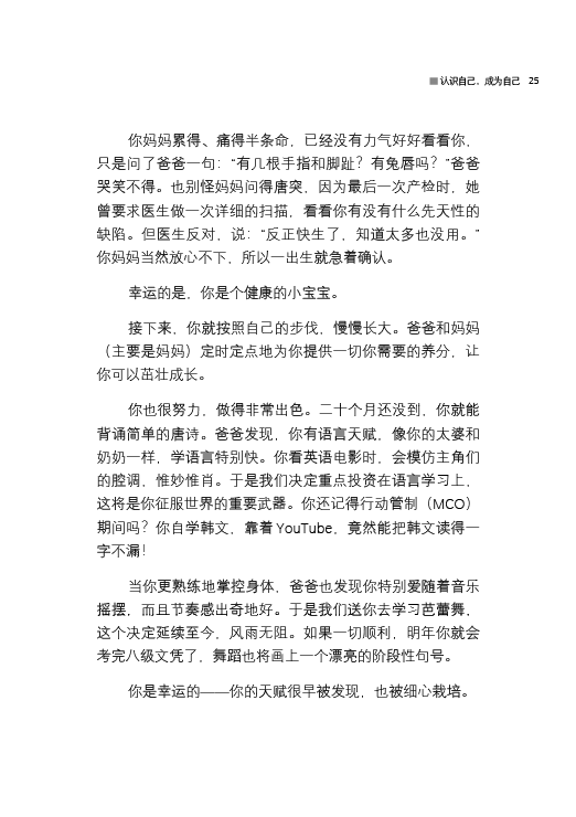 全书分为10个章节,每章5封信,涵盖人生各阶段的思考,从认识自己、情绪管理、爱与关系、家庭与代际沟通、金钱观、身体意识、职业热爱、时间选择、社会责任,到生命意义,一步步带领读者看见人生的不同阶段与功课。最重要的,是关于人生定位——你是谁,你想成为什么样的人。文字里有父亲的叮咛与疼惜,也有过来人的体悟与提醒。