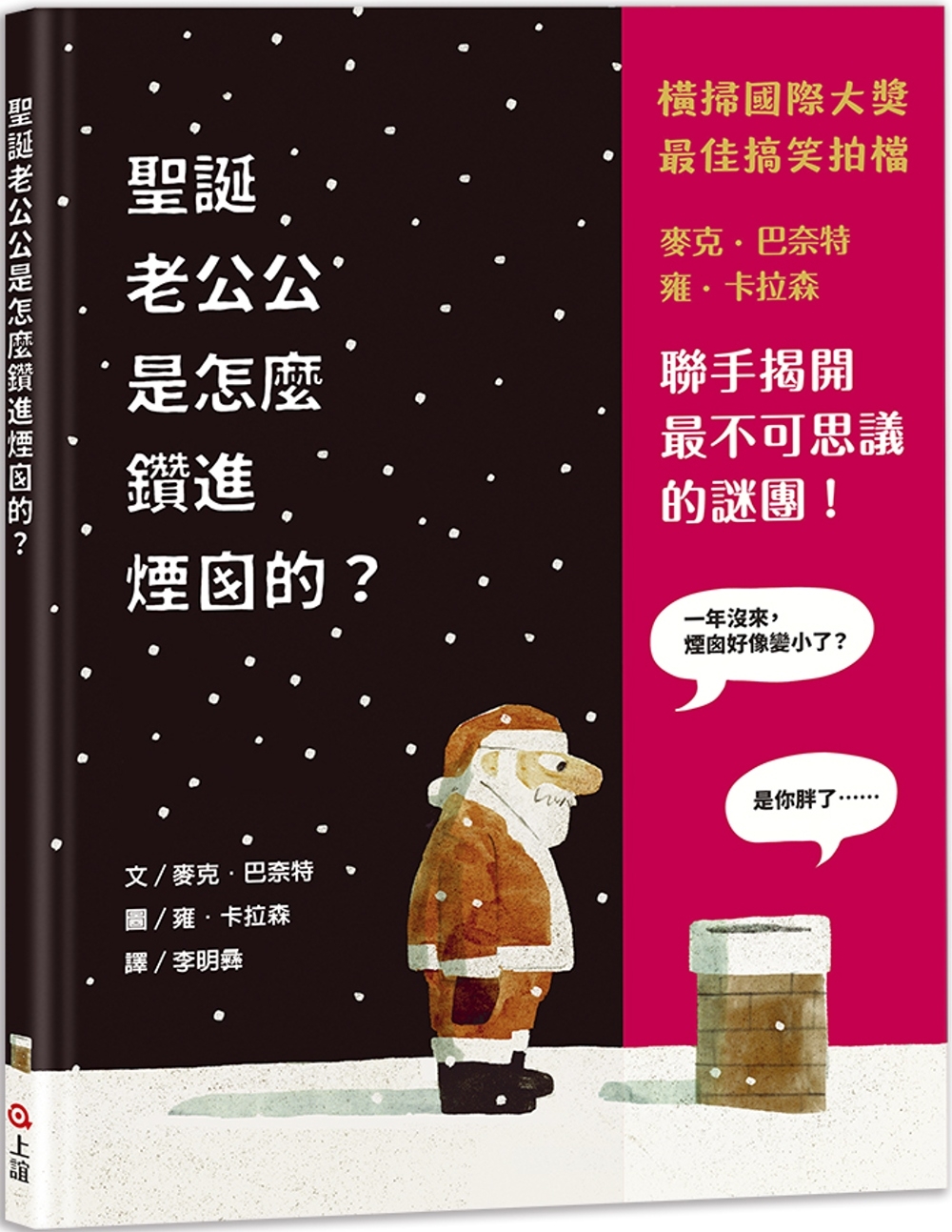 聖誕老公公到底怎麼鑽進煙囪裡,一直以來都是全世界孩子心中的疑惑。為了解開這道世紀謎團,麥克.巴奈特透過無限的創意,把所有想得到的方法都演練了一遍,加上他的最佳拍檔──雍.卡拉森,以詼諧逗趣的畫風,將故事一步步推向了高潮!