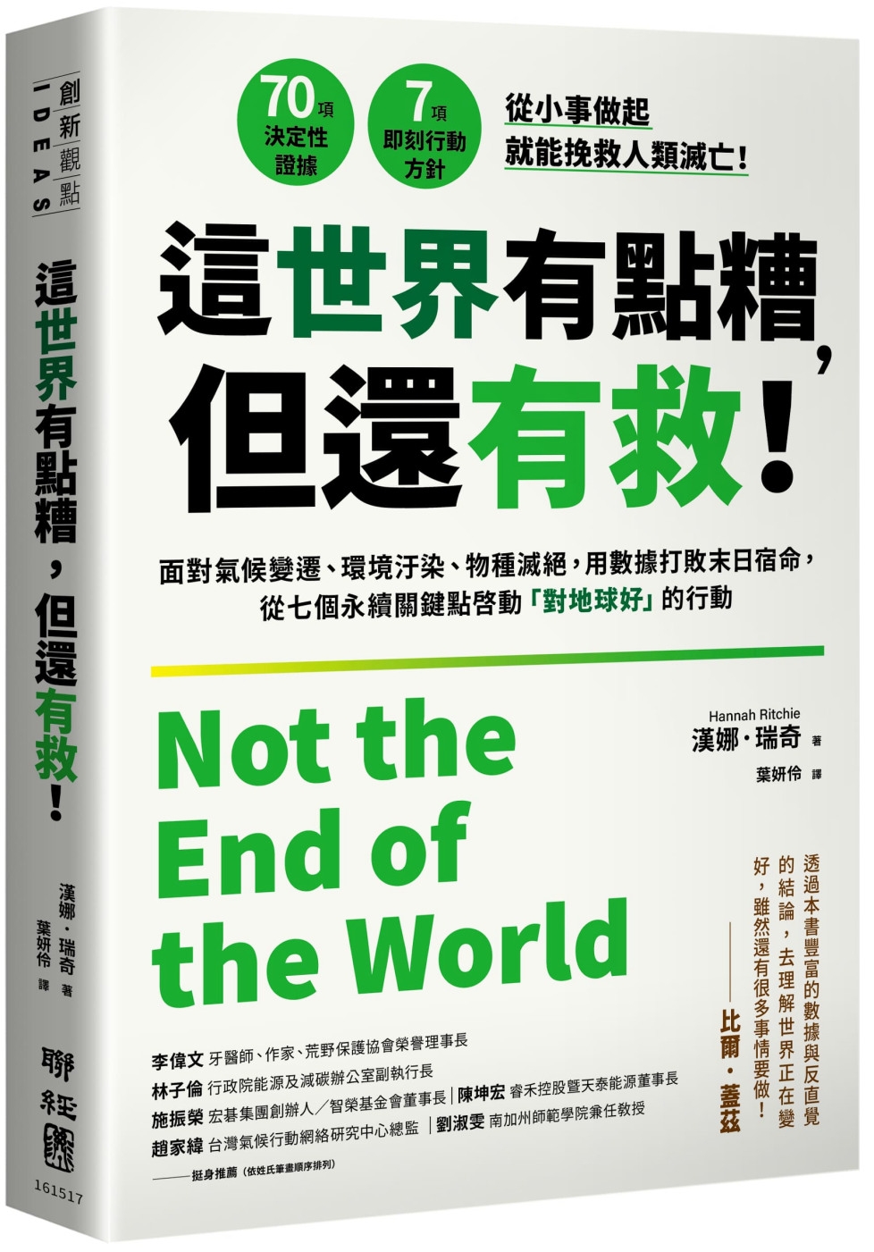 有些人否認環境問題存在,有些人則否認我們能解決問題。漢娜.瑞奇告訴我們,他們都錯了。—— 約翰.諾伯格(Johan Norberg),《捍衛全球資本主義》(In Defense of Global Capitalism)、《進步》(Progress)作者