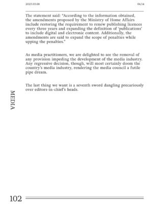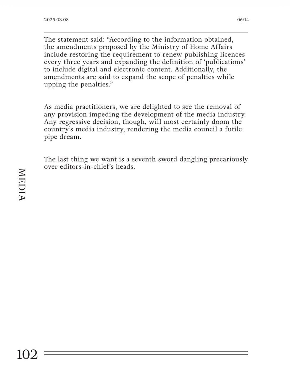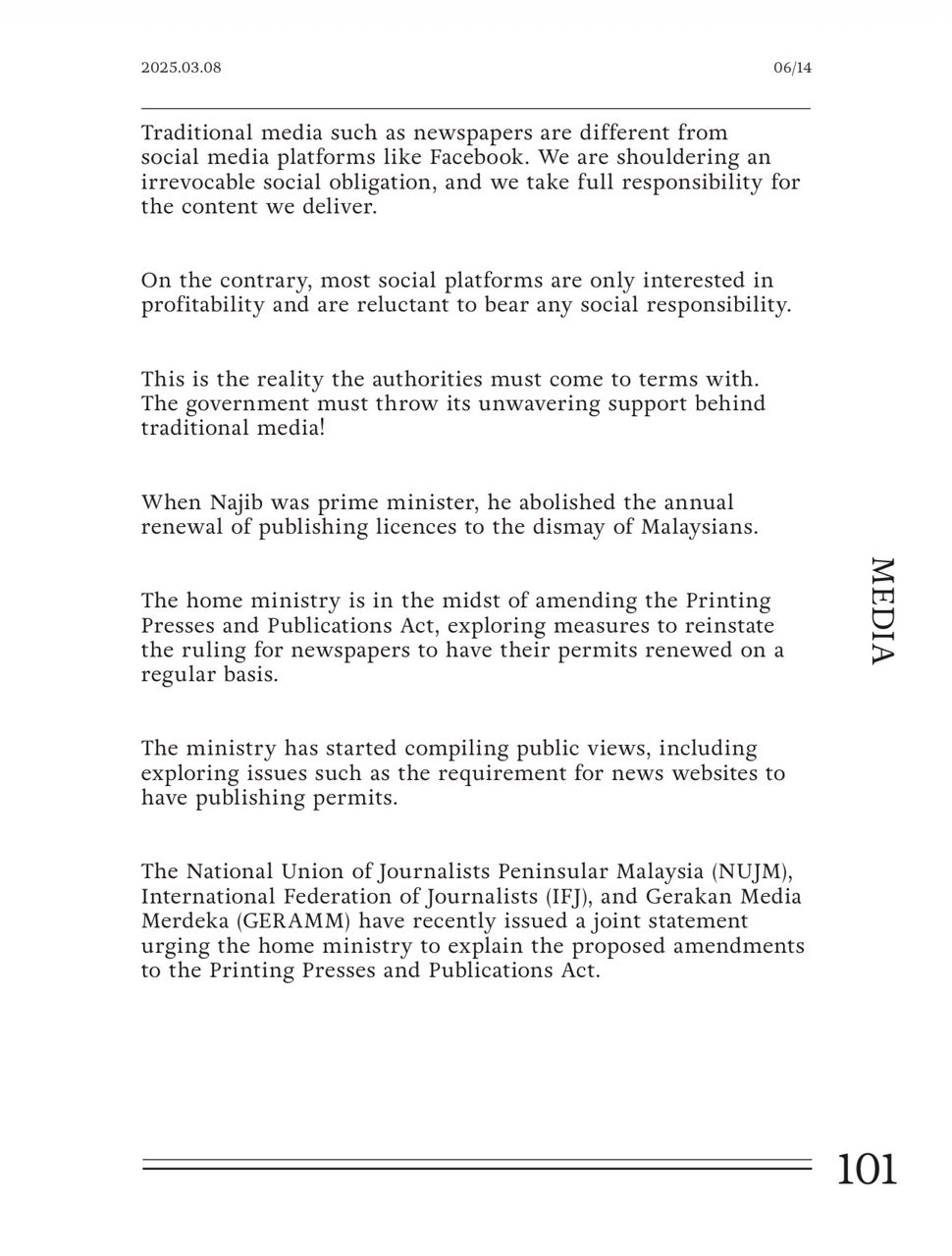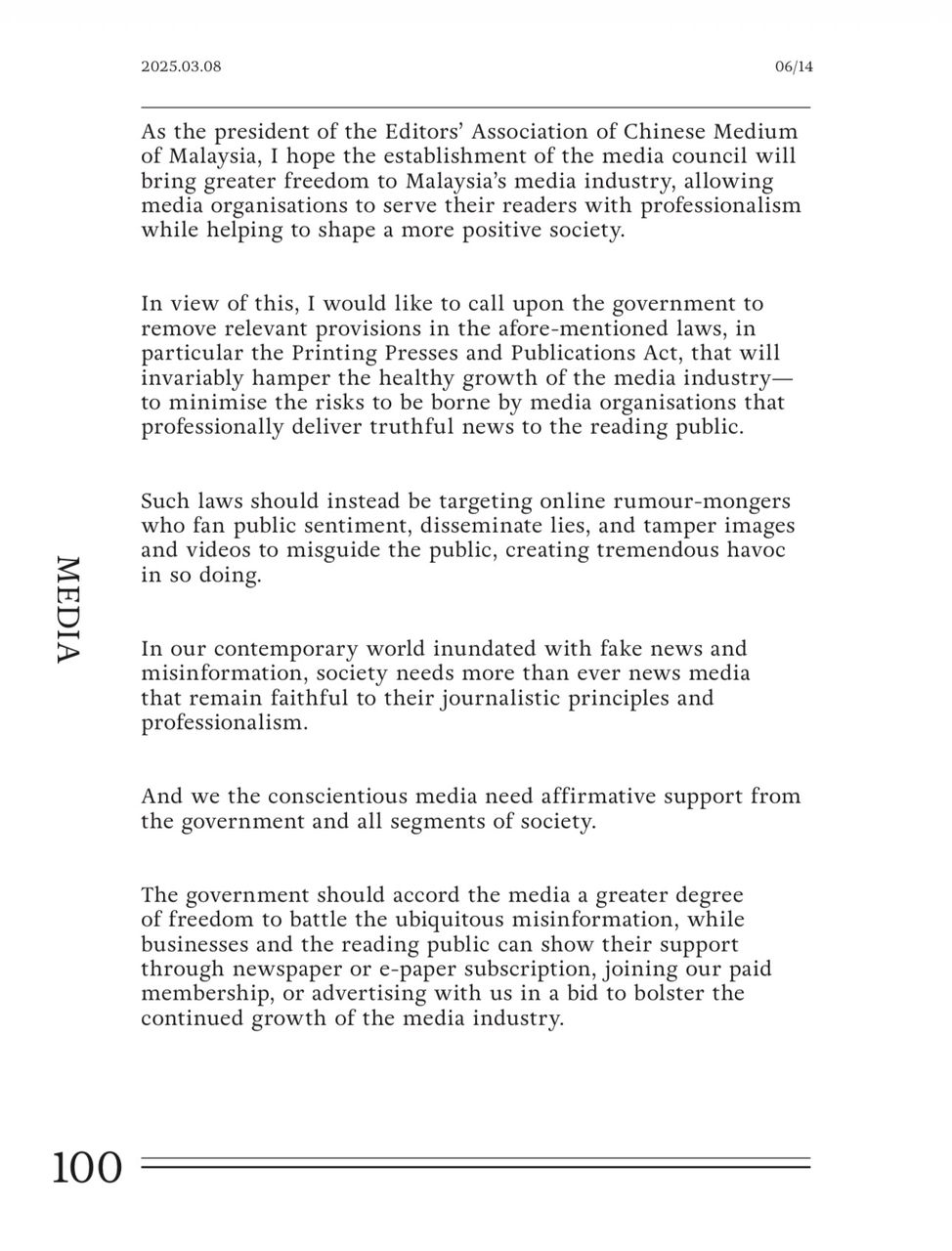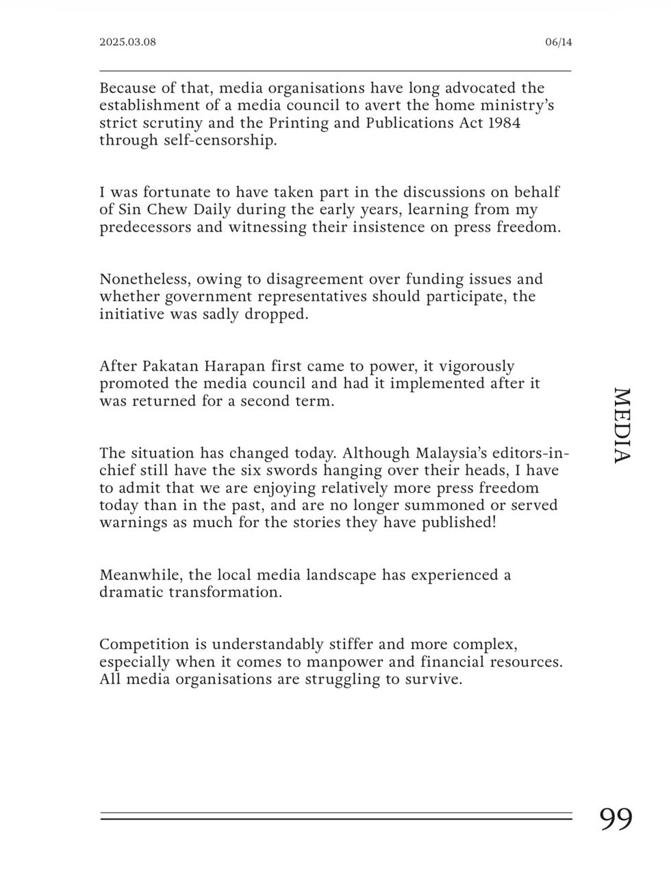 In 2025, he concluded his tenure as Editor-in-Chief of Sin Chew Daily but continues to serve as Group Editor-in-Chief of Media Chinese International Limited (Malaysia). On 7 November 2025, he was appointed as a member of the Malaysia Media Council.