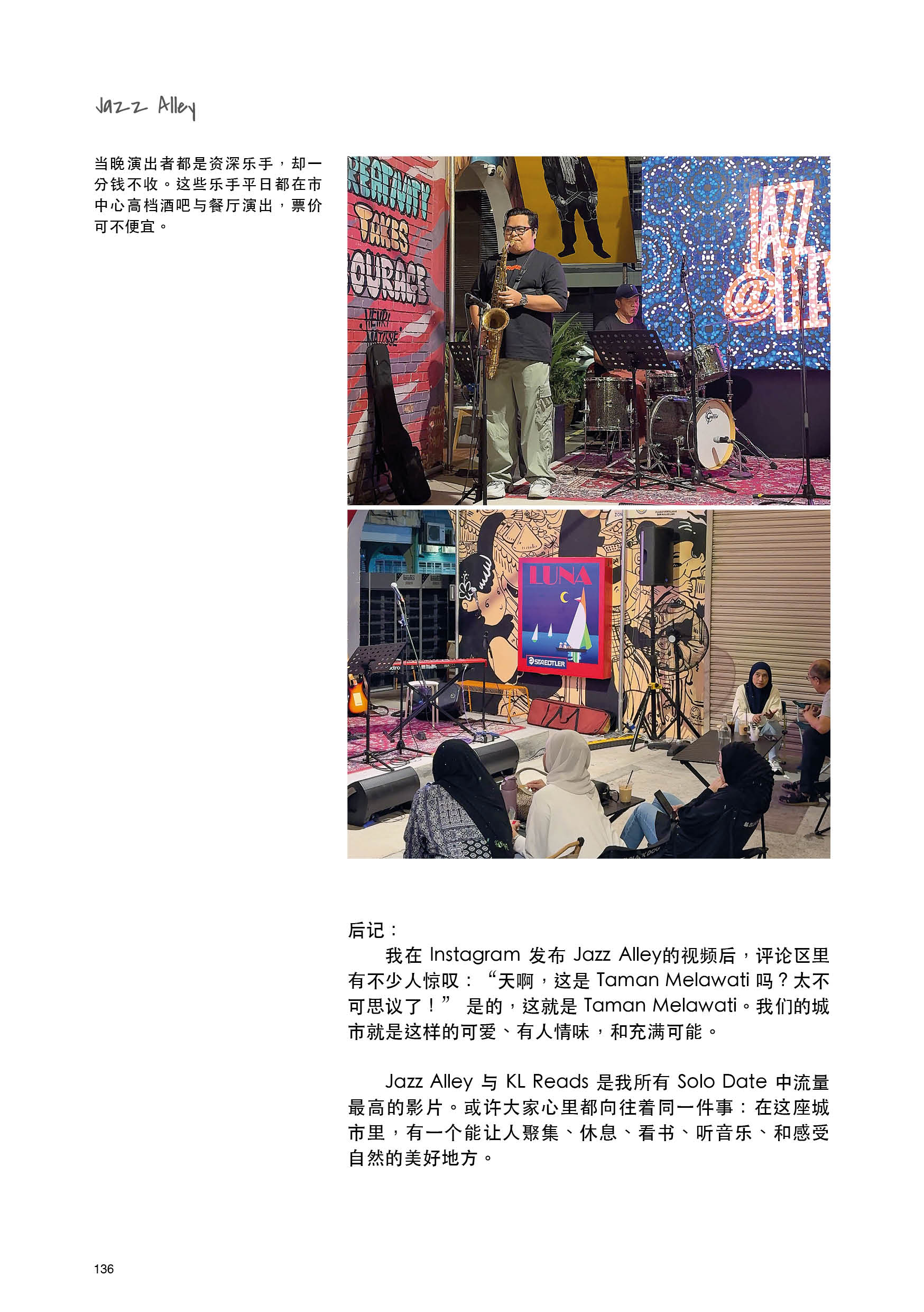 第一本书,是这段旅程的延伸。书中收录了镜头里外的所见所闻,记录着她对这座城市和人们的观察,也写下她在独处中的感悟。这本书既是一份城市指南,也是一份独处指南,更是一封写给城市与自己的情书。